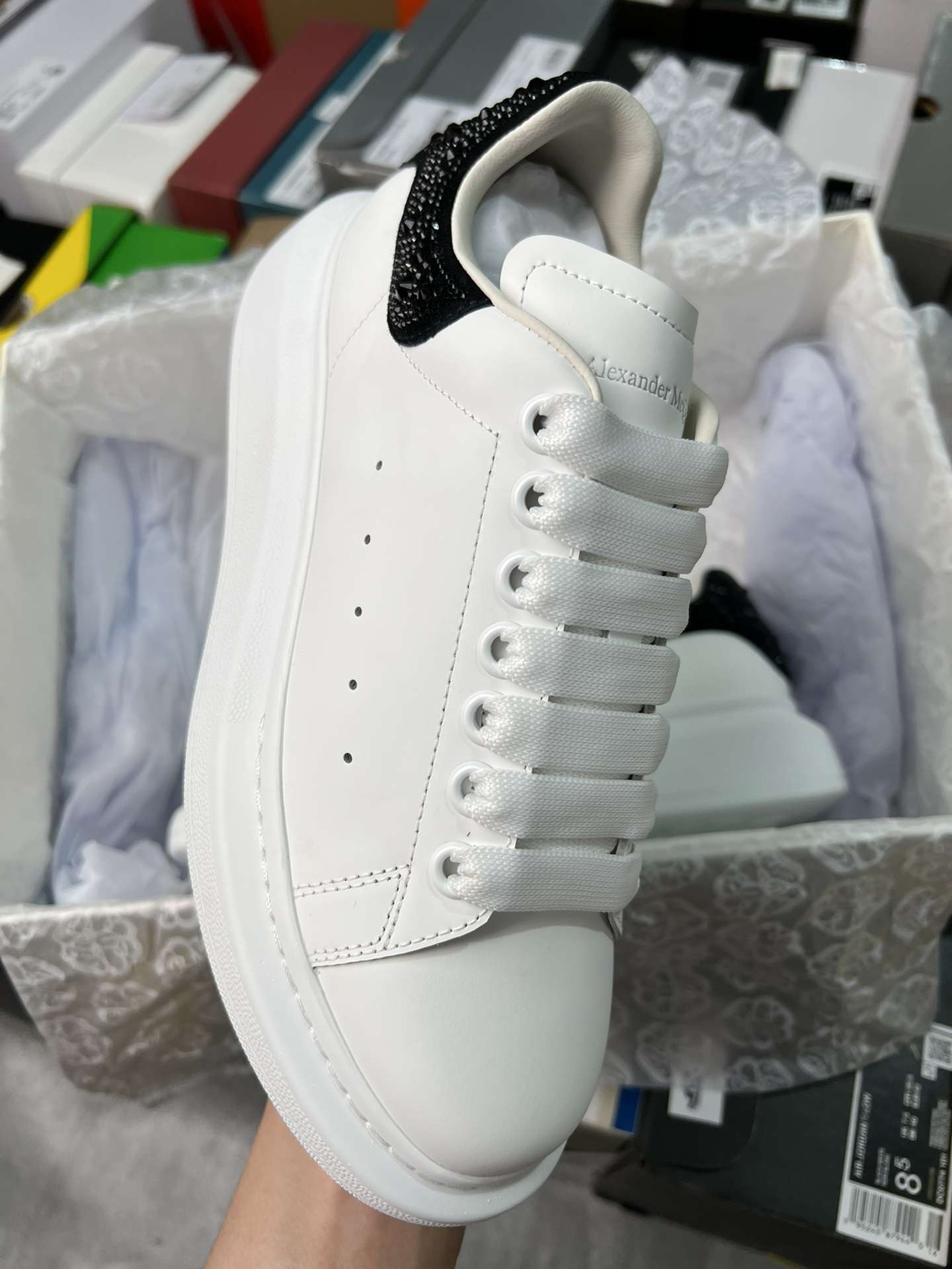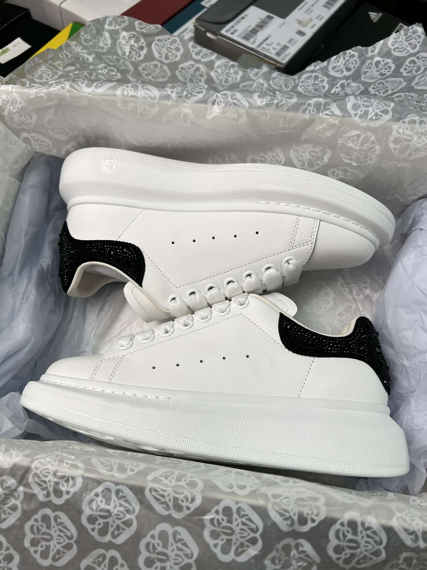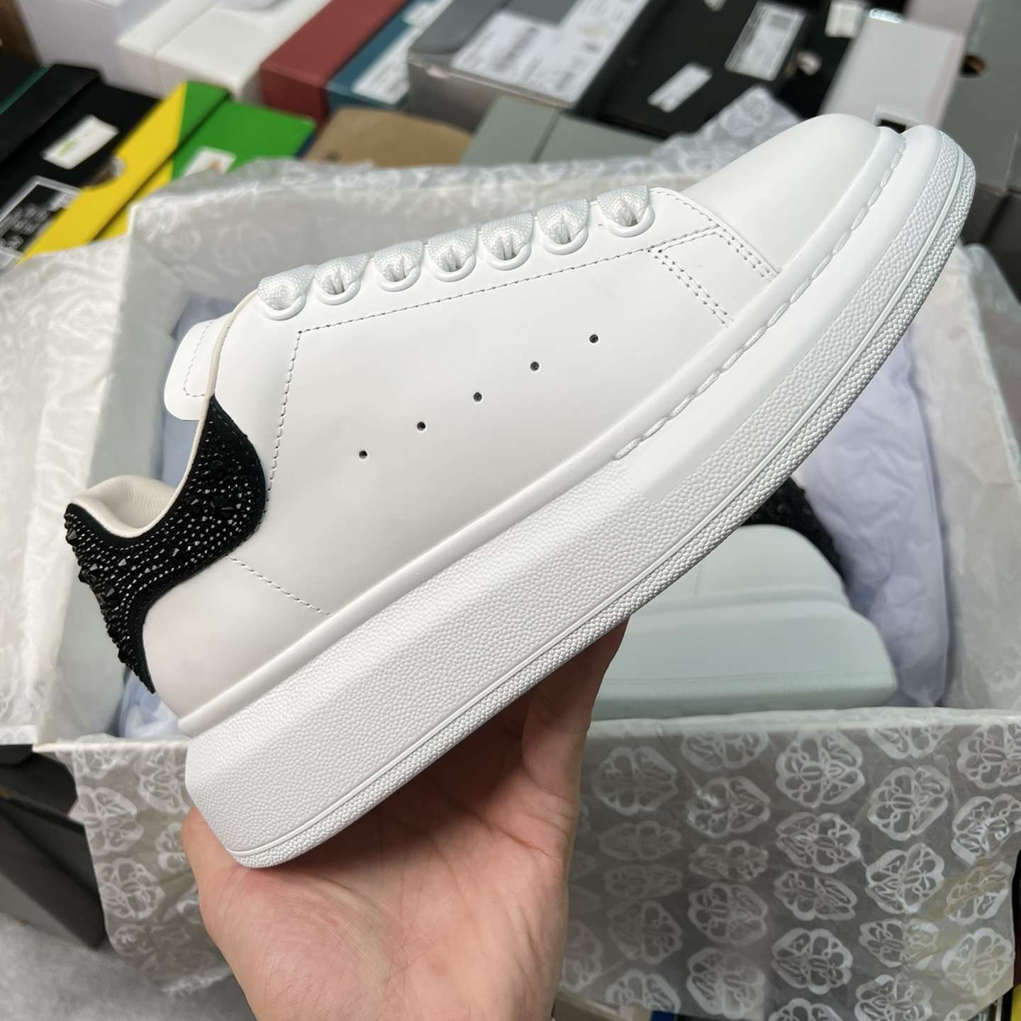 Replica Alexander Mcqueen Oversized Sneaker in White with Strass Spoiler Black