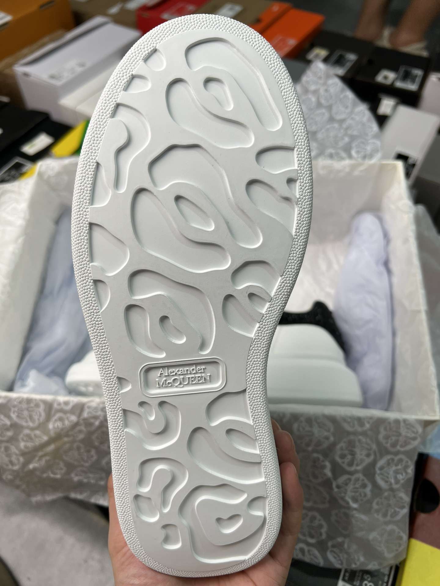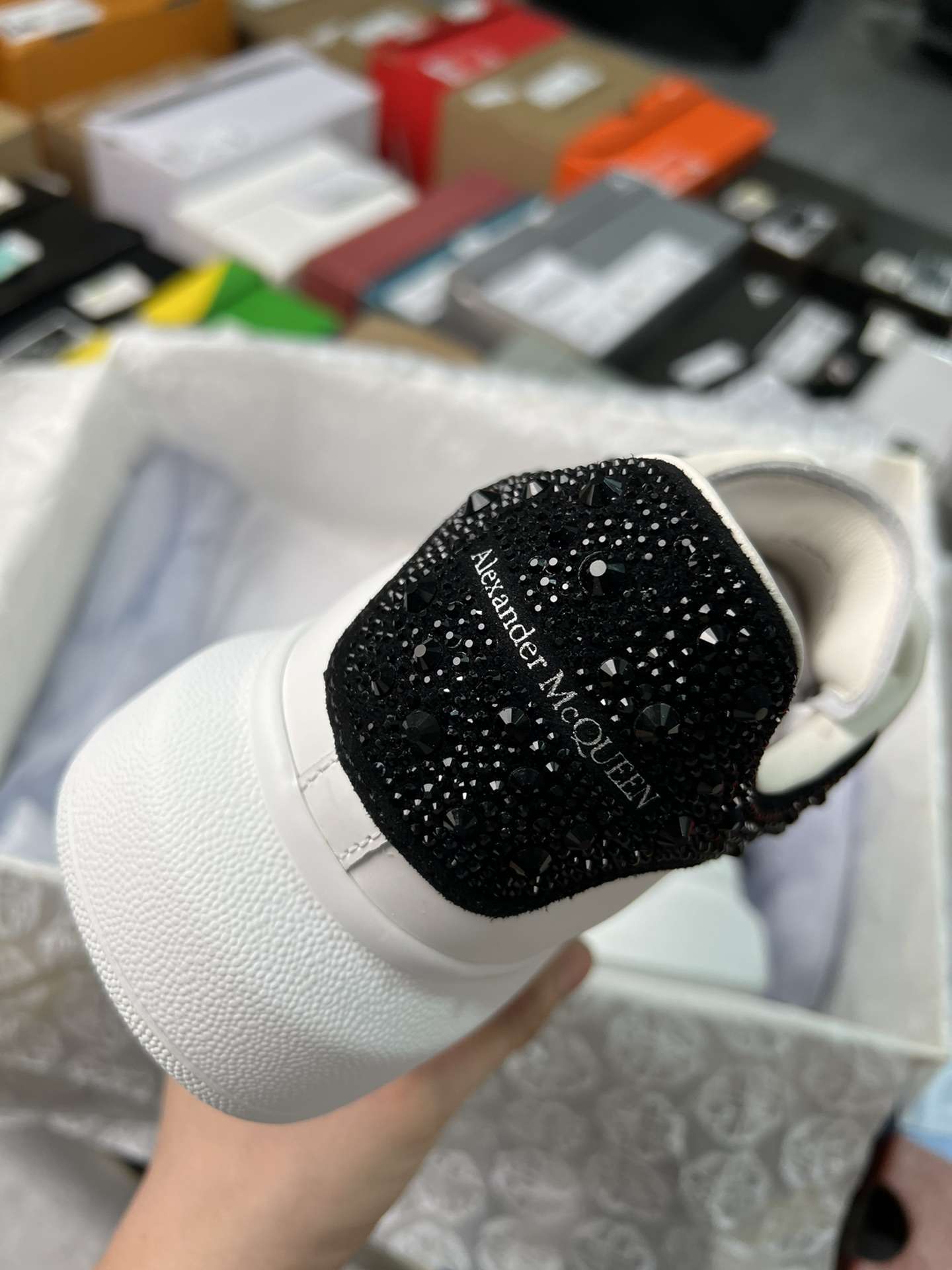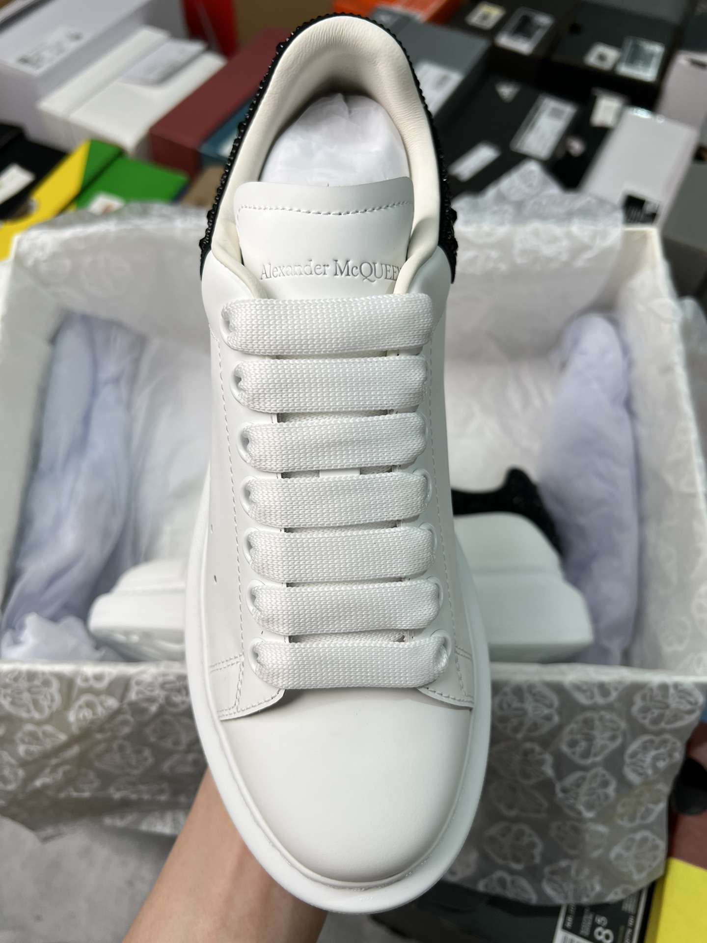 Replica Alexander Mcqueen Oversized Sneaker in White with Strass Spoiler Black