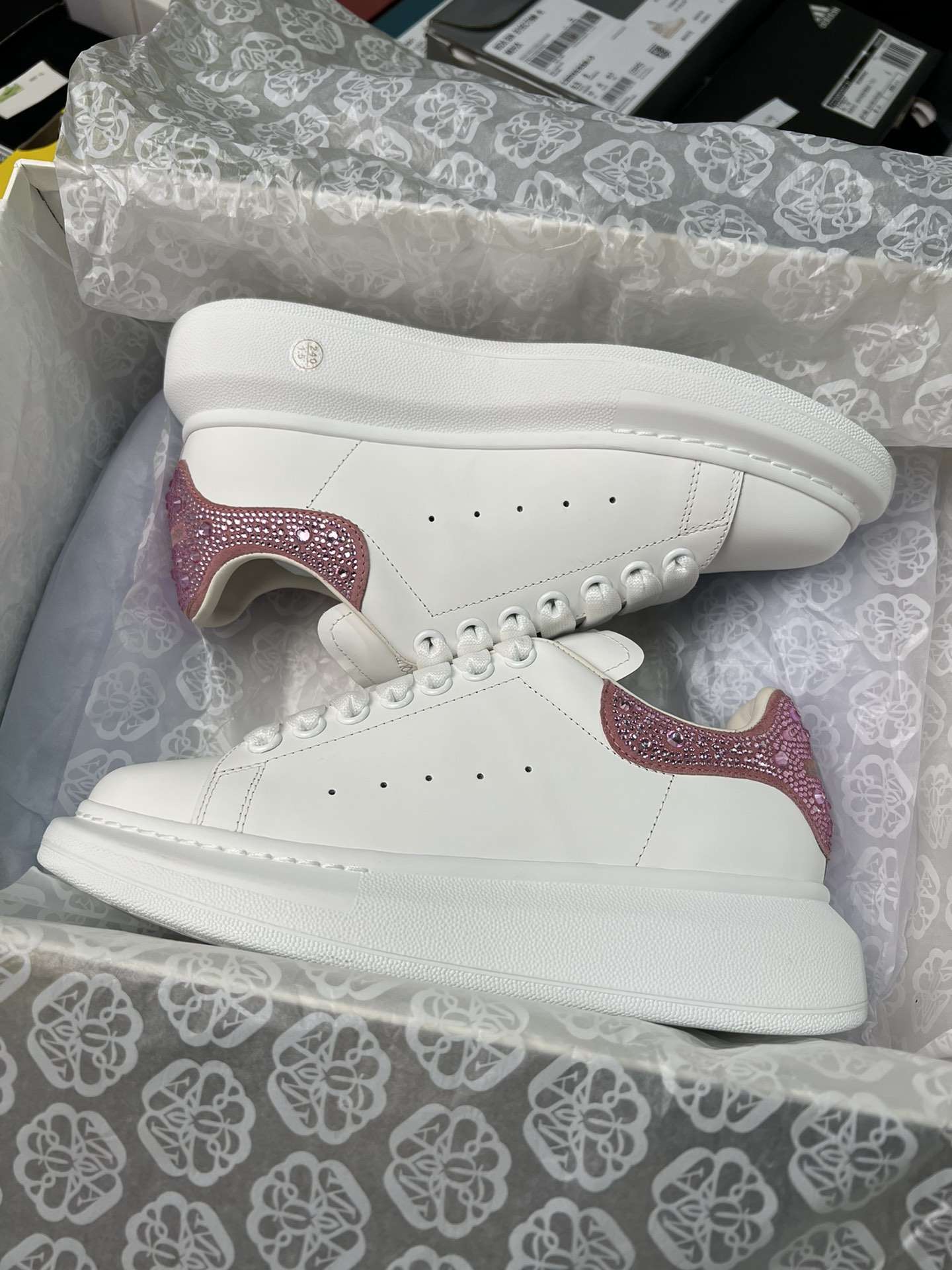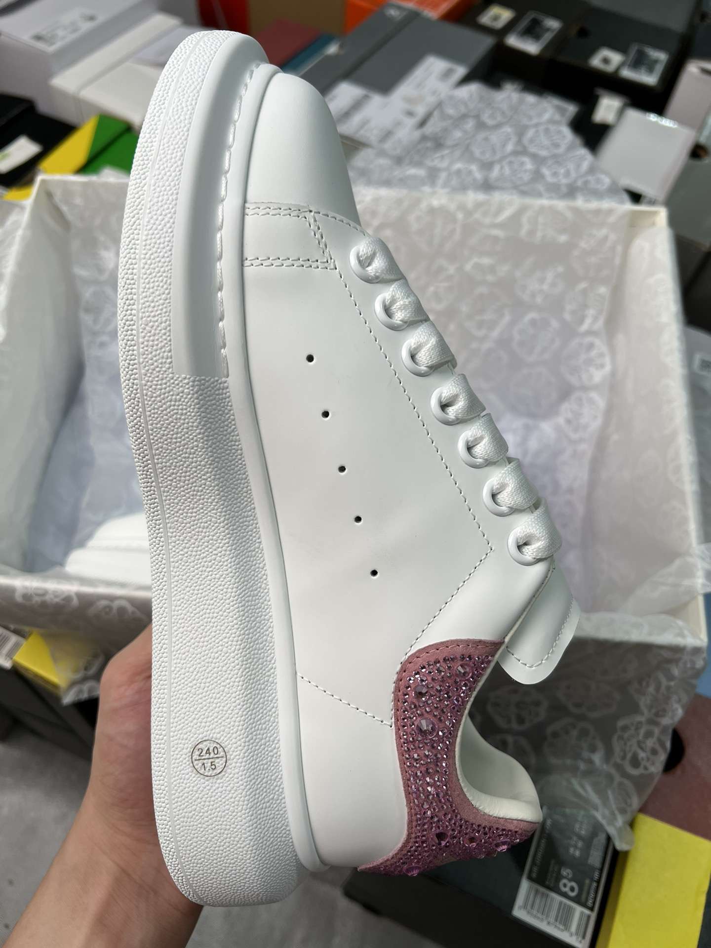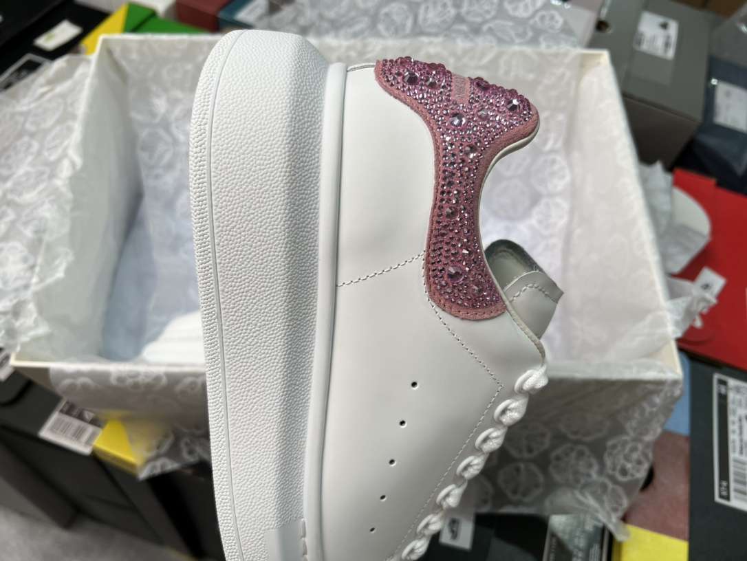 Replica Alexander Mcqueen Oversized Sneaker in White with Strass Spoiler Pink