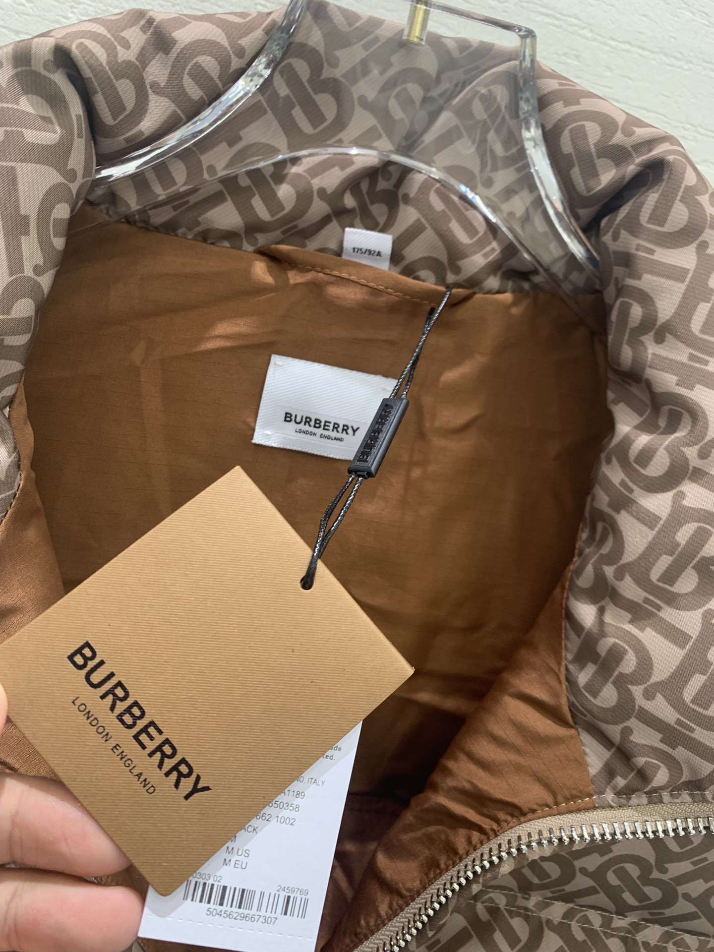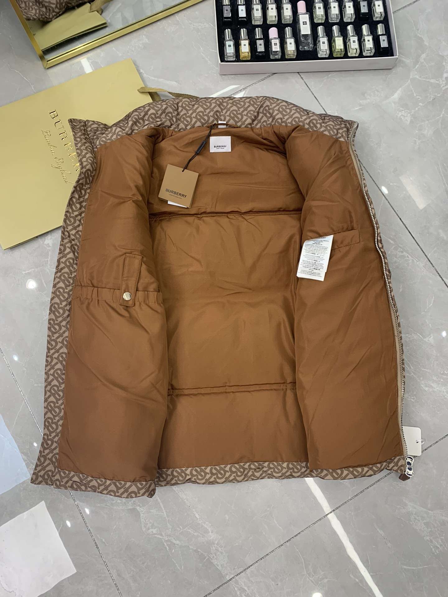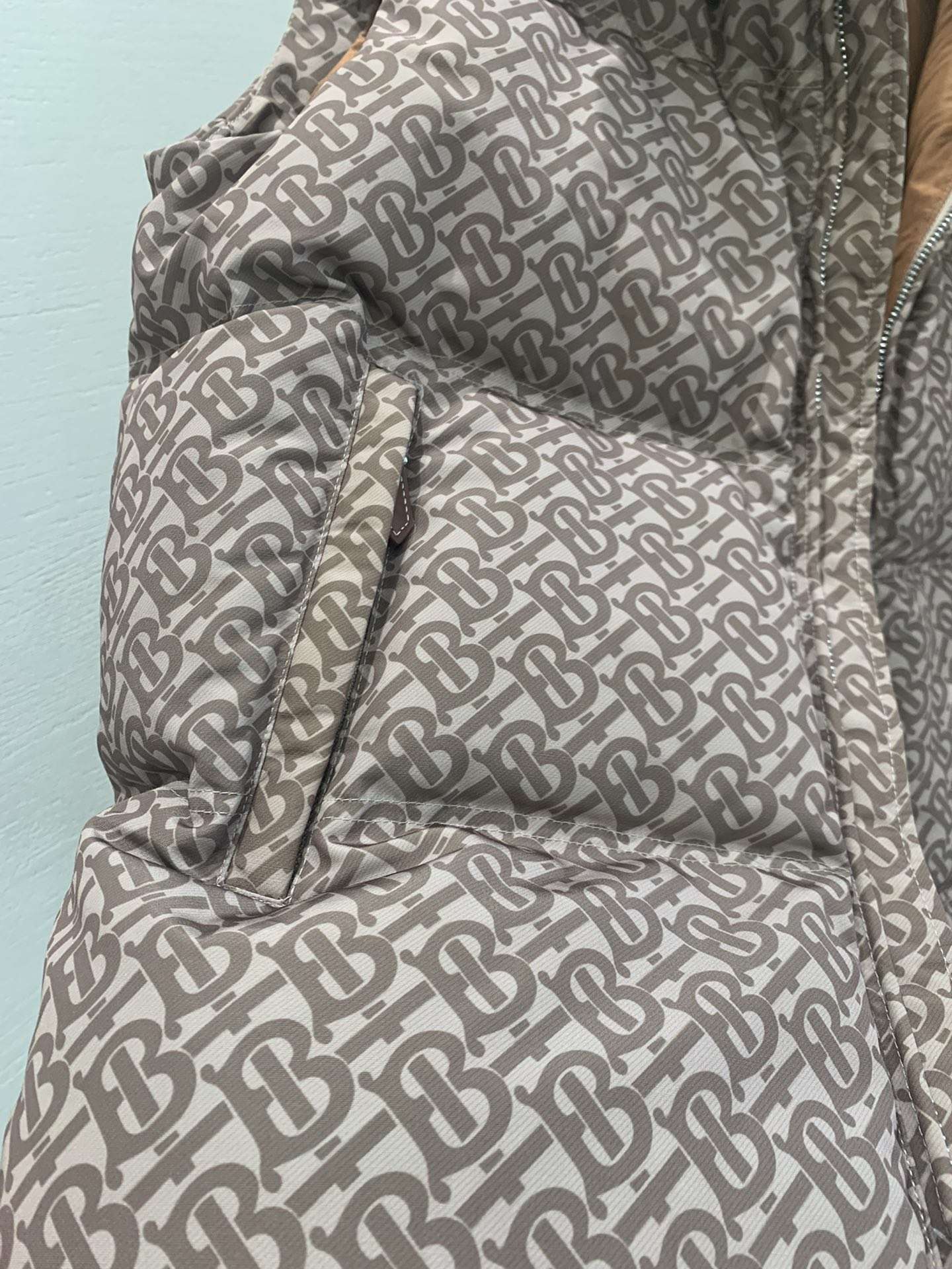 Replica Burberry FW Monogram Print Zipped Gilet Down Vest for Unisex Khaki