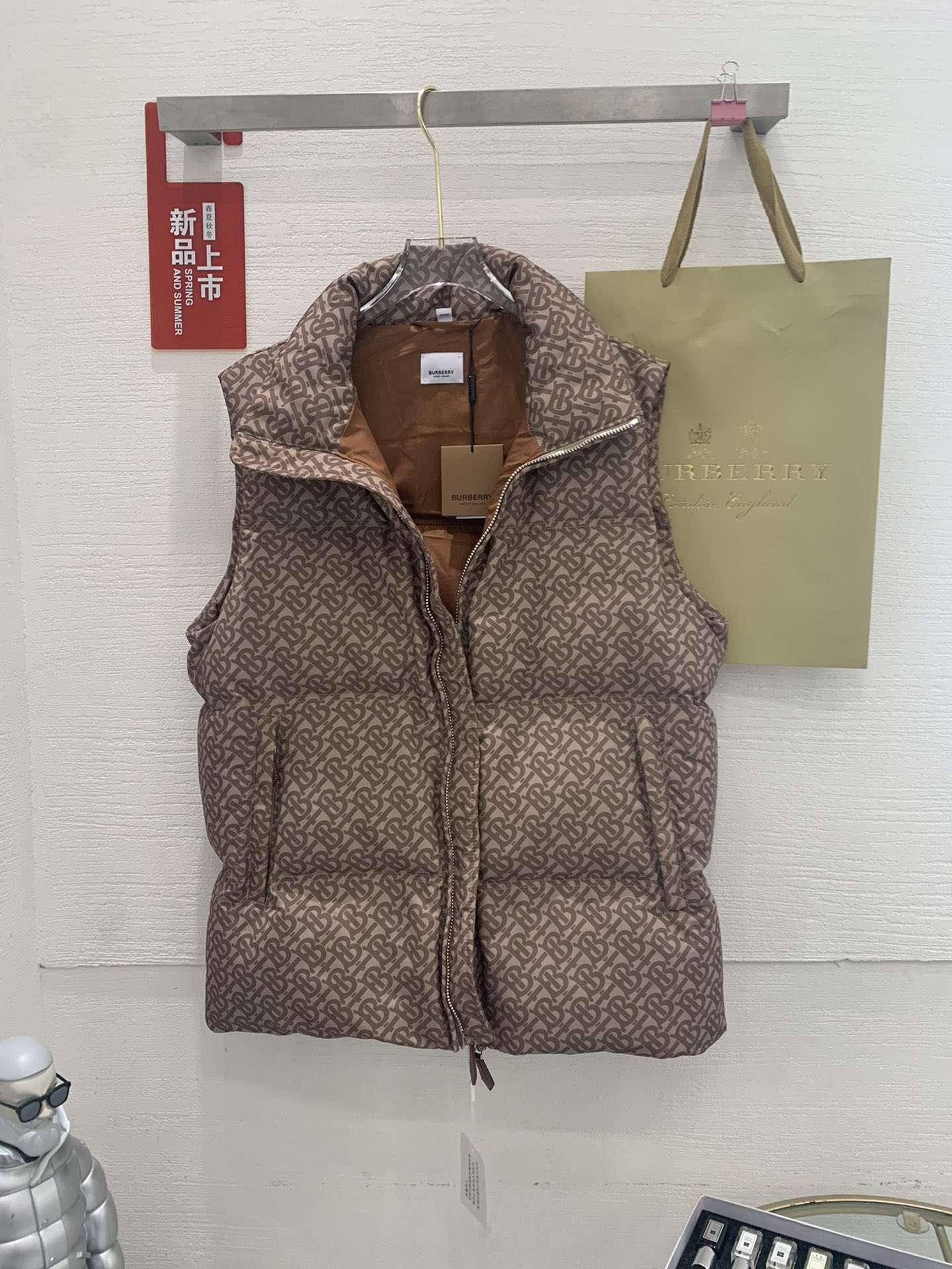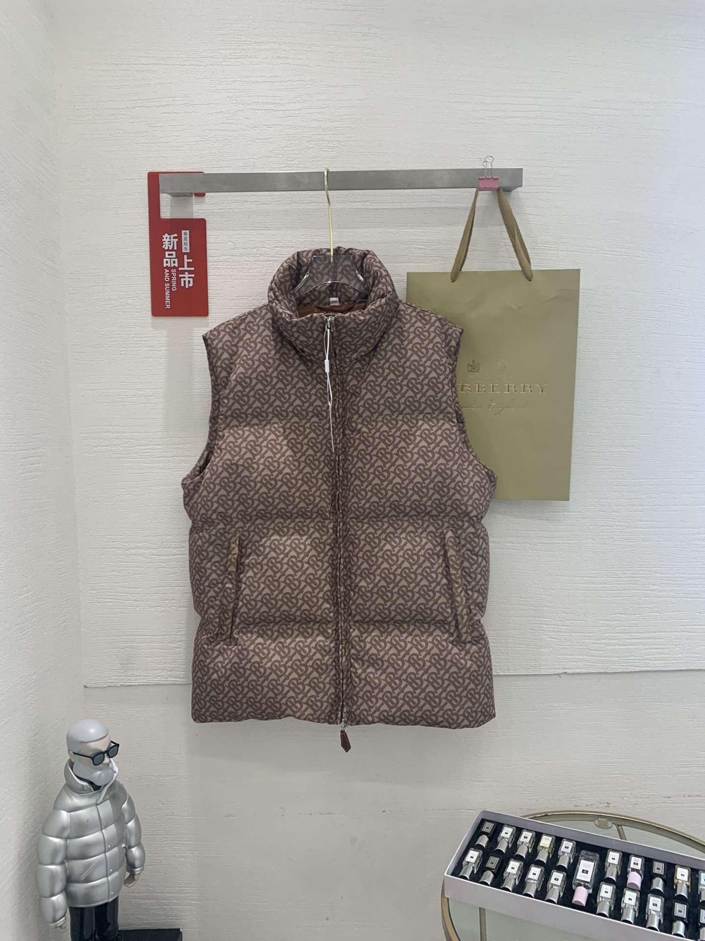 Replica Burberry FW Monogram Print Zipped Gilet Down Vest for Unisex Khaki