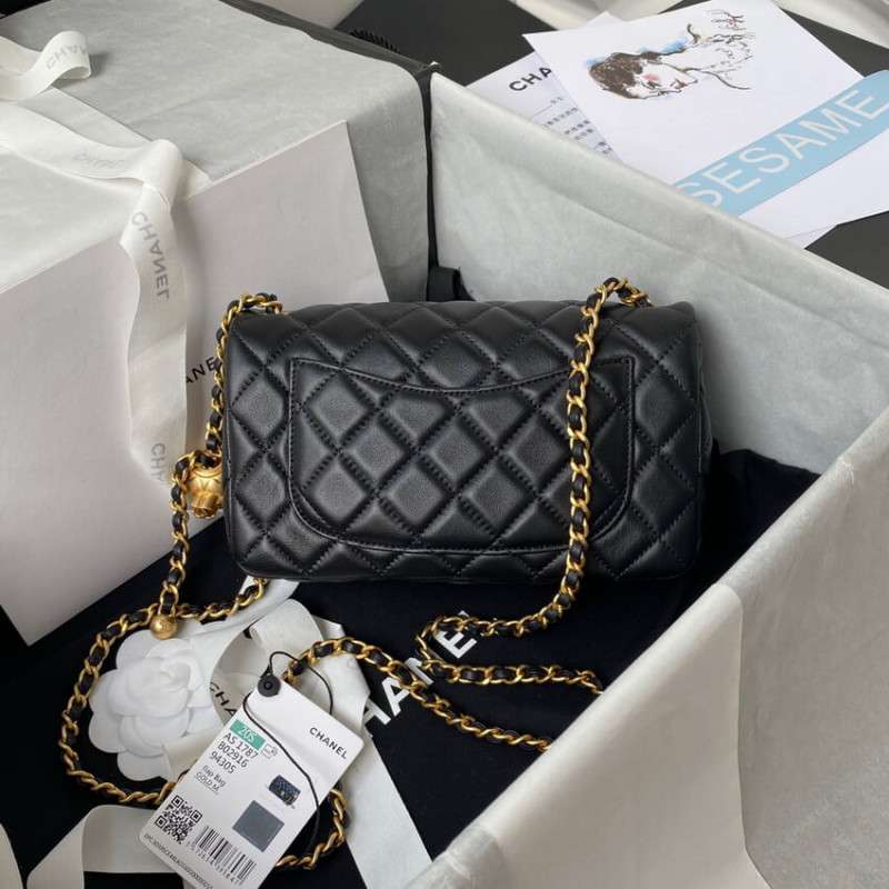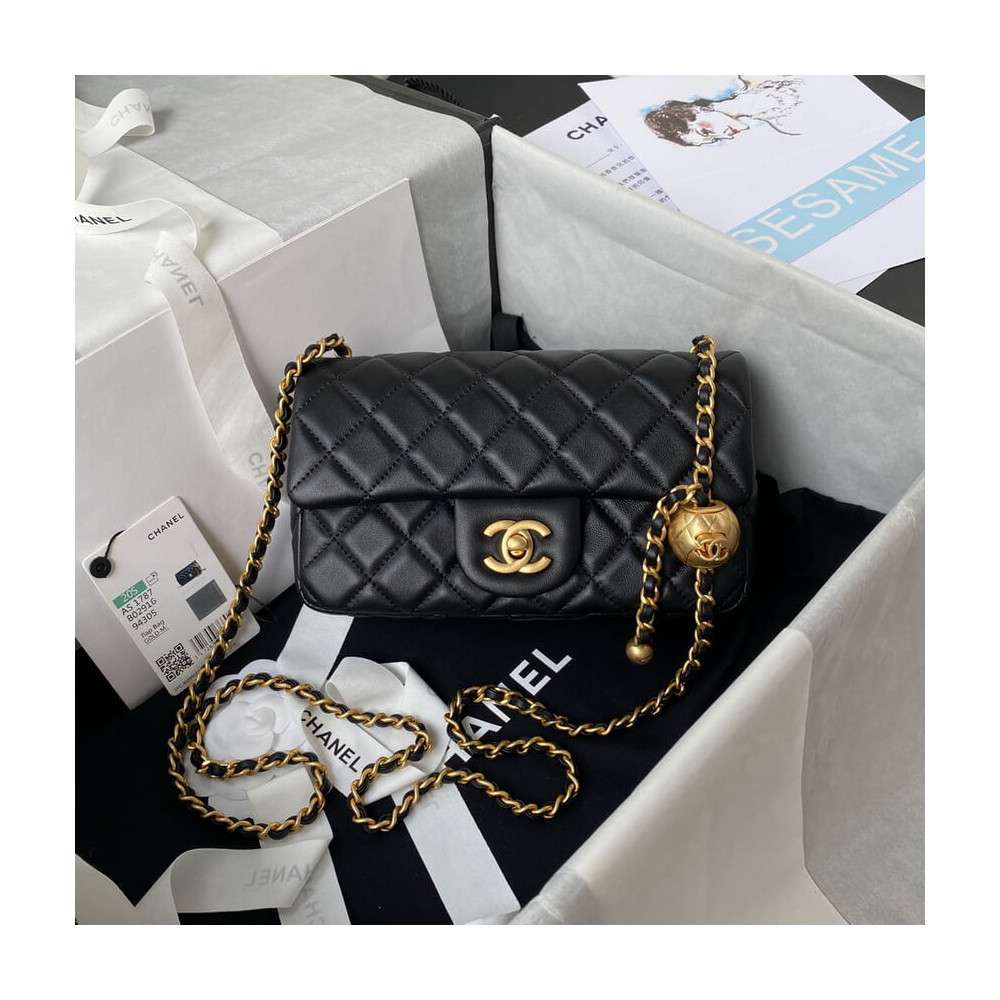– New Chanel Lambskin Flap Bag with adjustable chain.