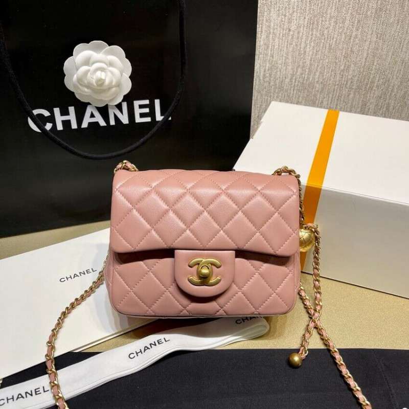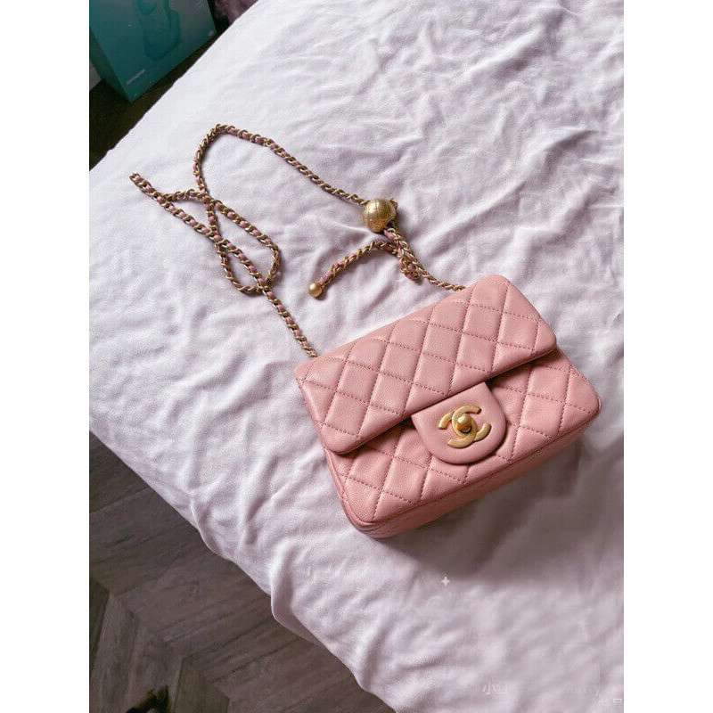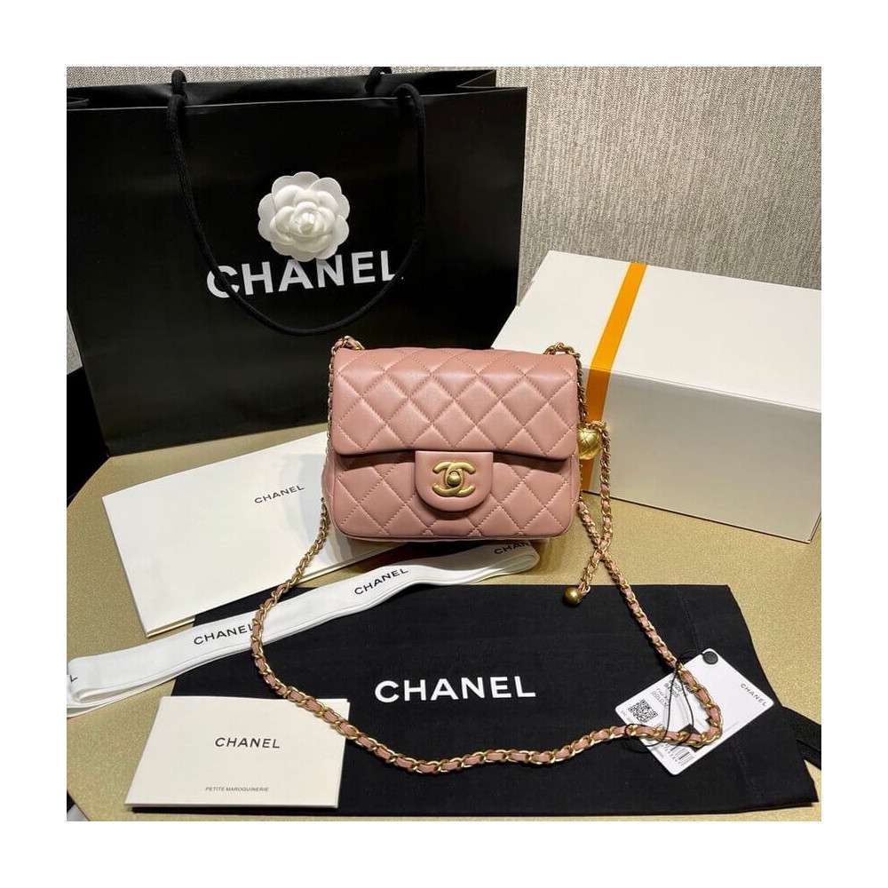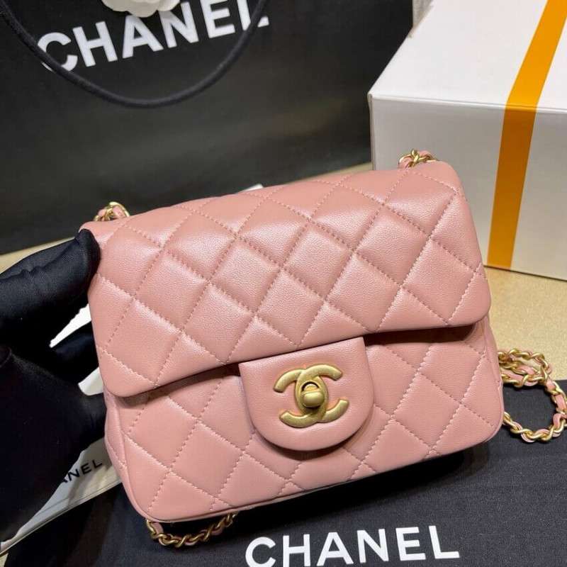 – New Chanel Lambskin Flap Bag mini square bag with adjustable chain.