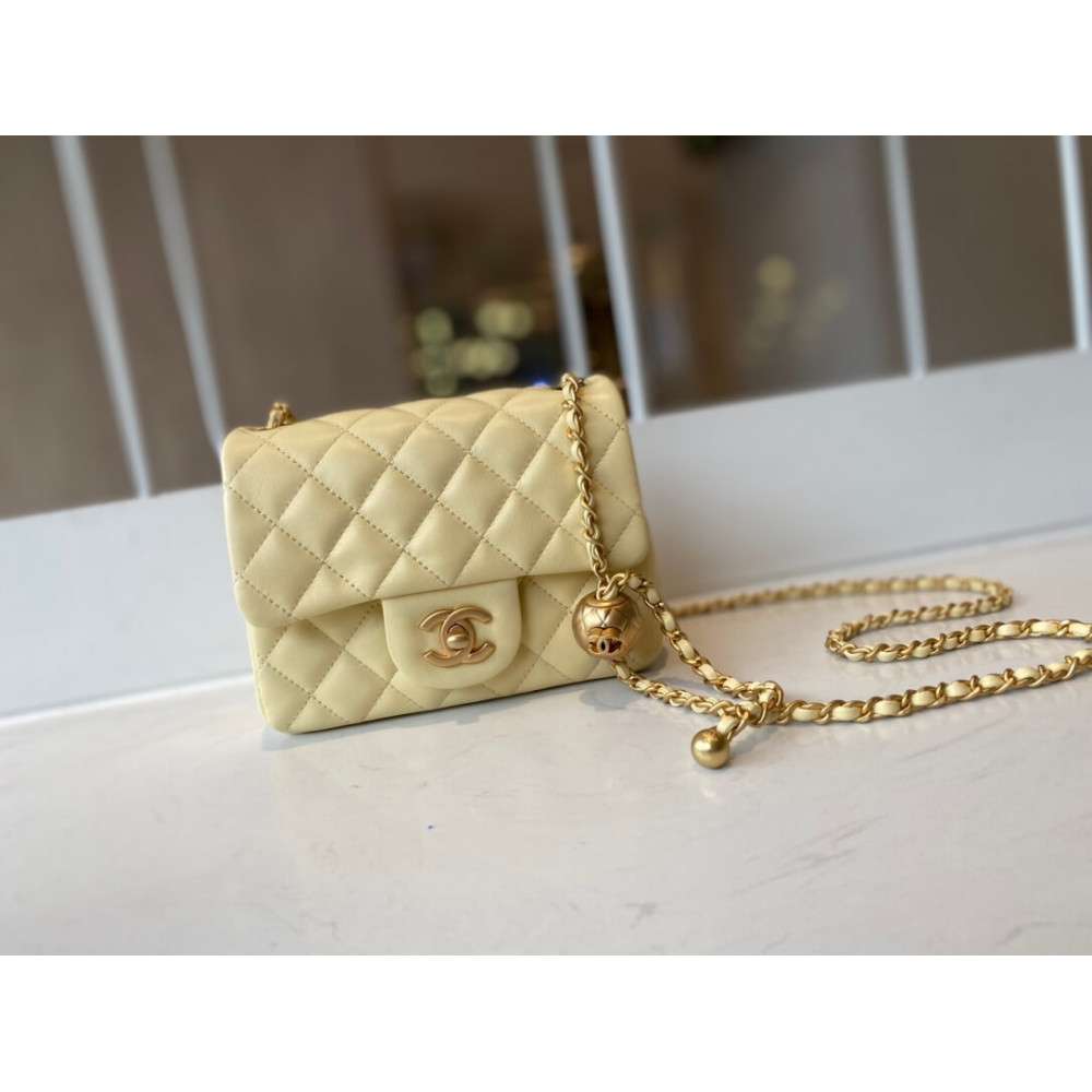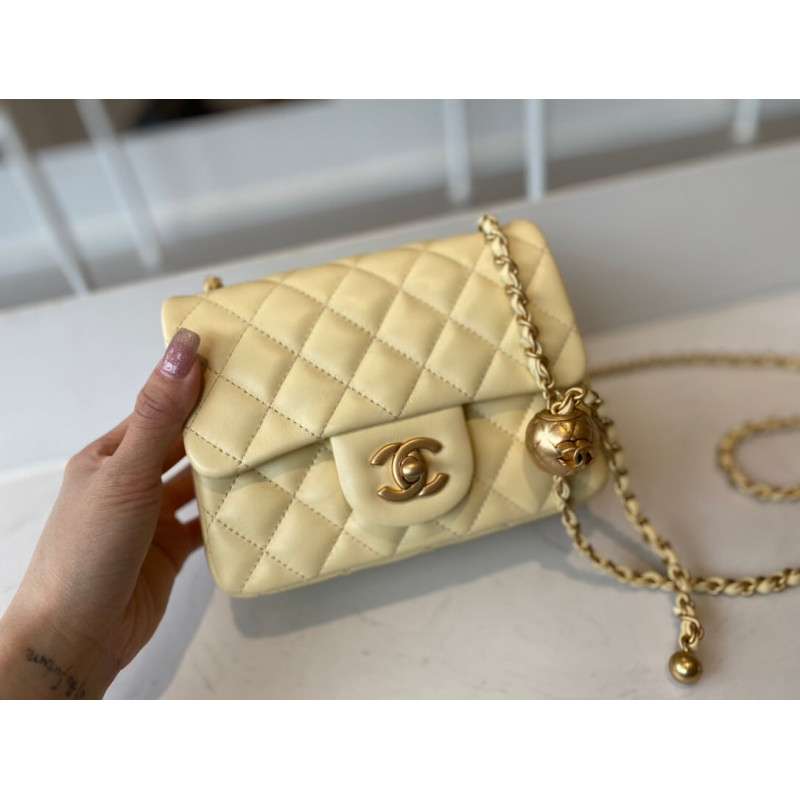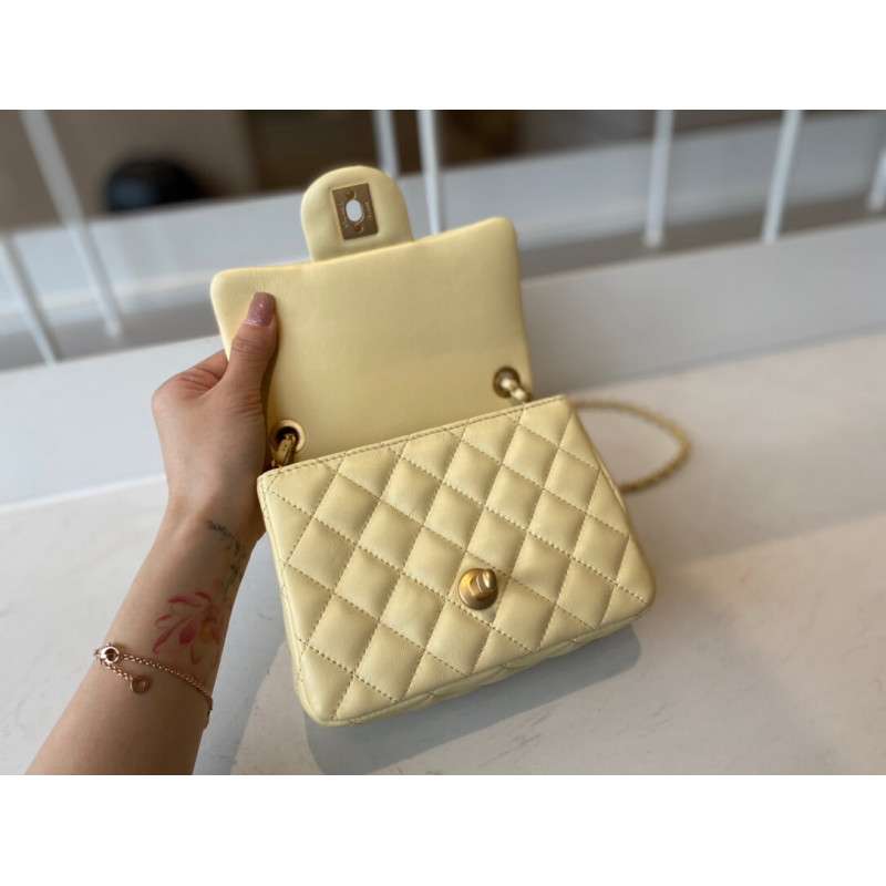 – New Chanel Lambskin Flap Bag mini square bag with adjustable chain.