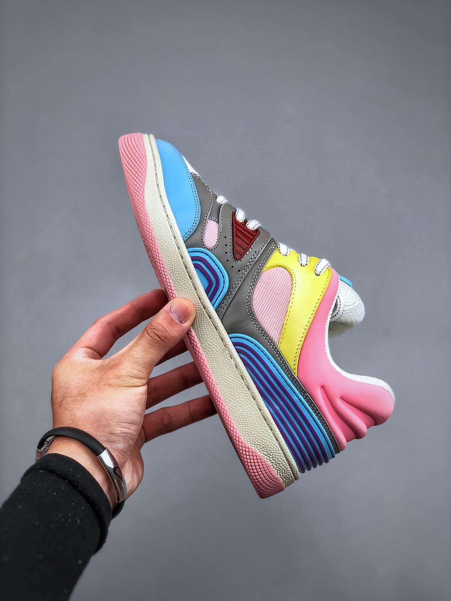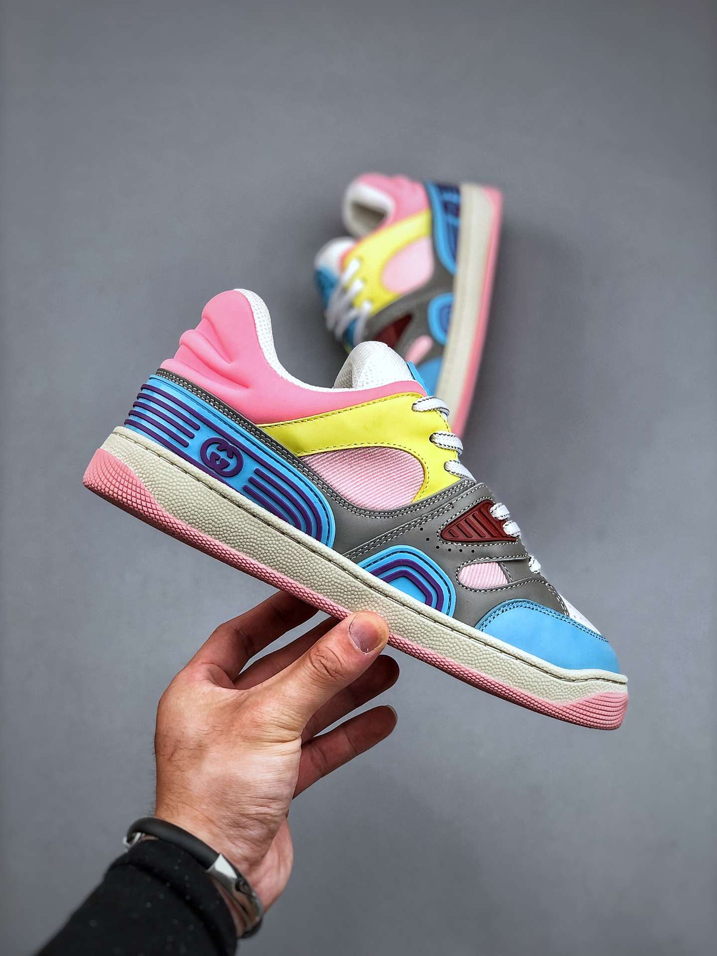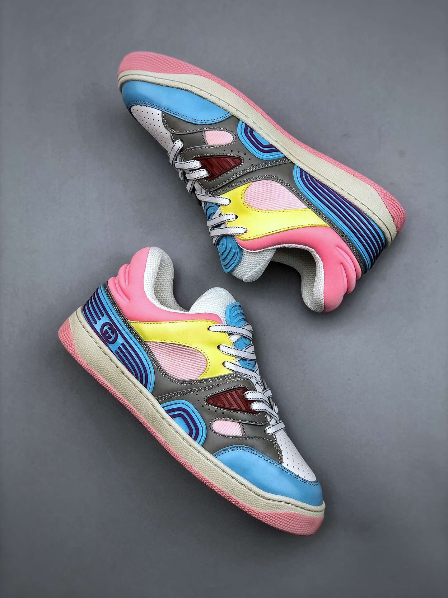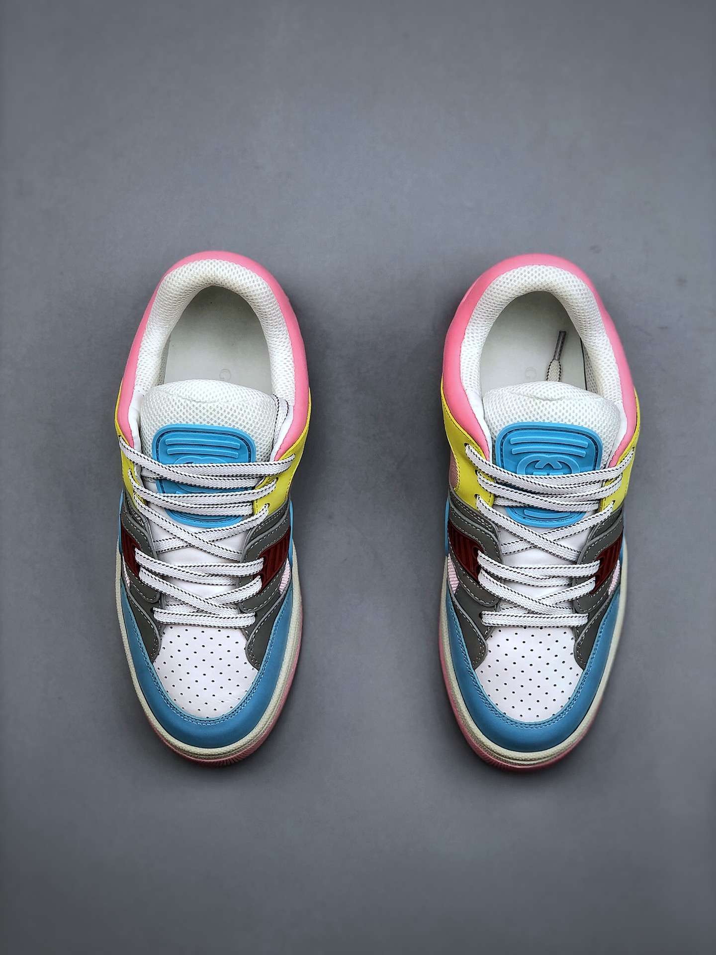 Replica Gucci Basket Demetra Lace Up Low Top Sneaker Multicolor Light Blue Pink