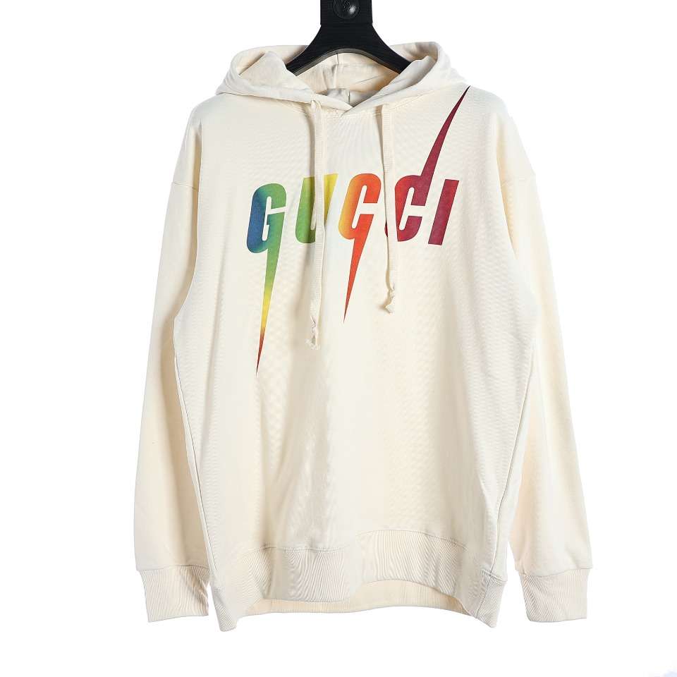 Replica Gucci Rainbow Gradient Lightning Print Hoodie For Unisex Black Apricot