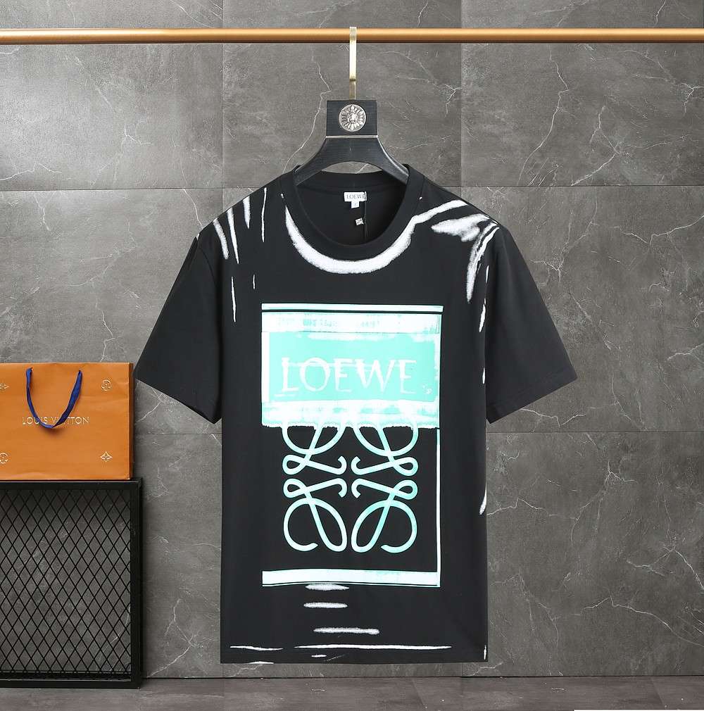 Replica LOEWE New Crew Neck T-shirts Black Apricot #HT055