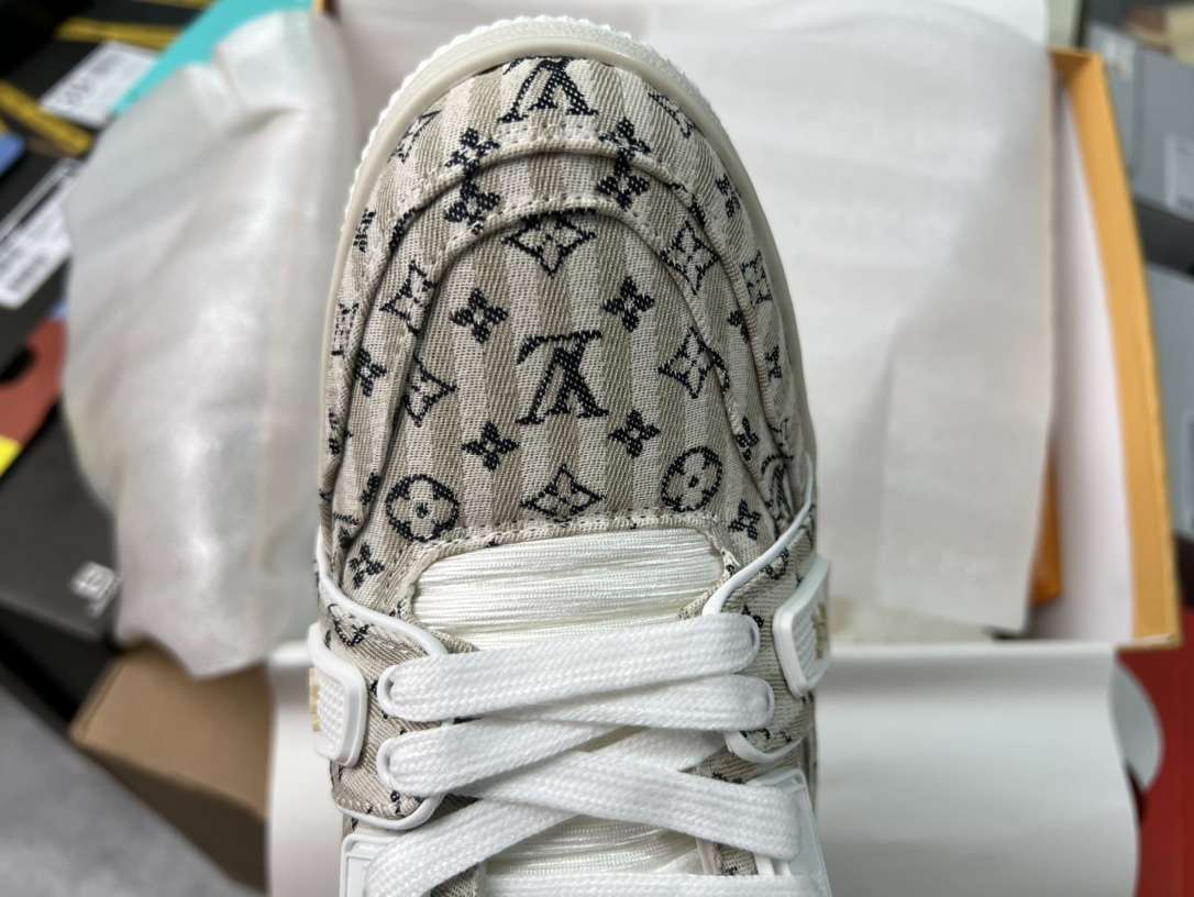 Replica Louis Vuitton 23New Monogram Sneakers Plain Toe Casual Style Unisex Beige