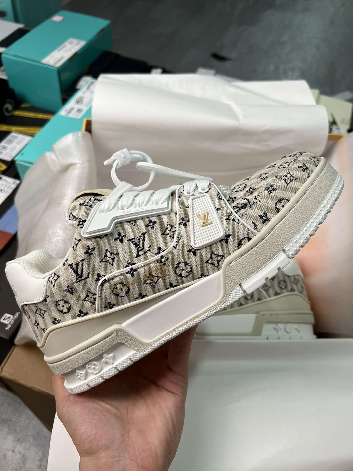 Replica Louis Vuitton 23New Monogram Sneakers Plain Toe Casual Style Unisex Beige