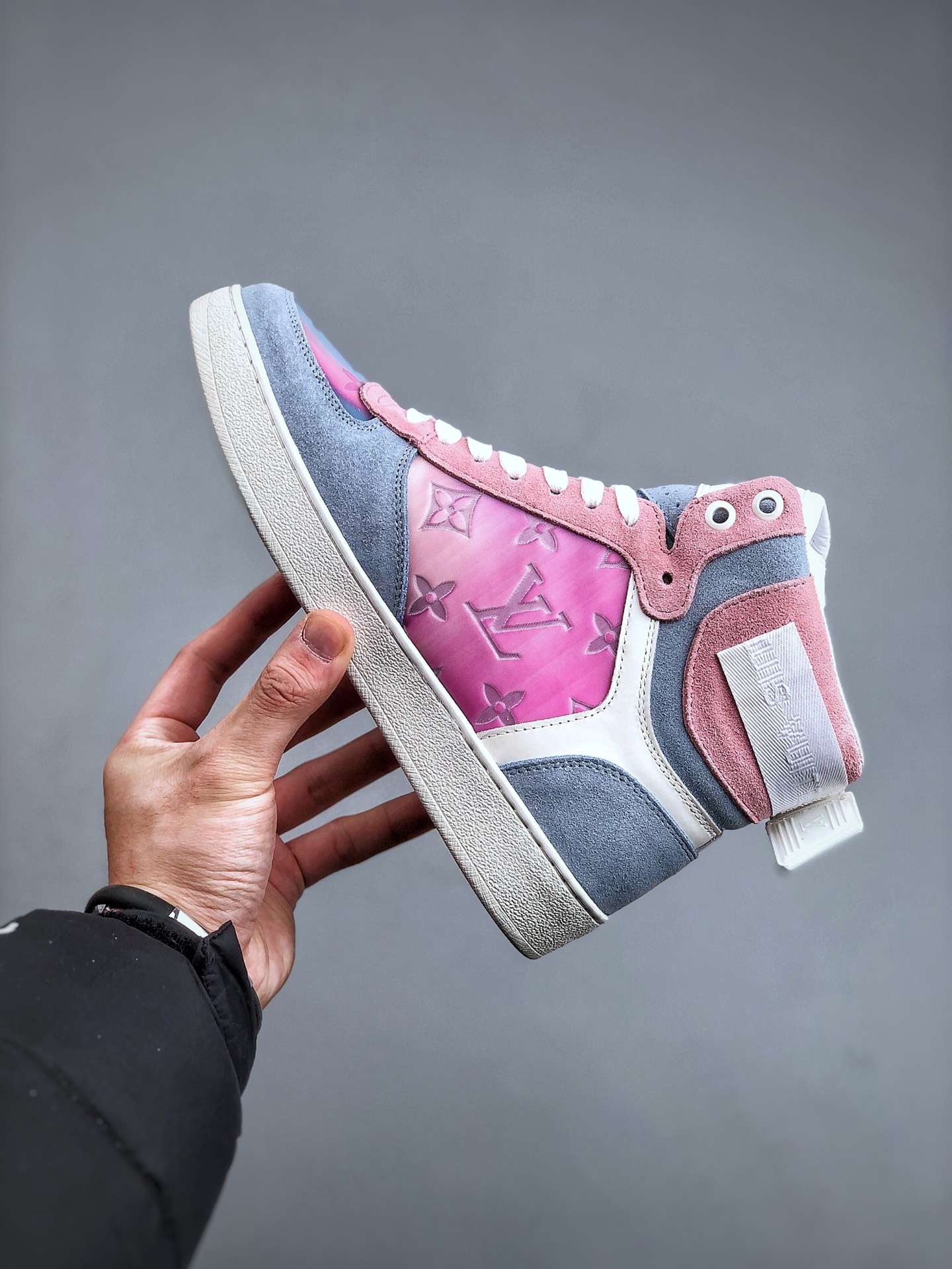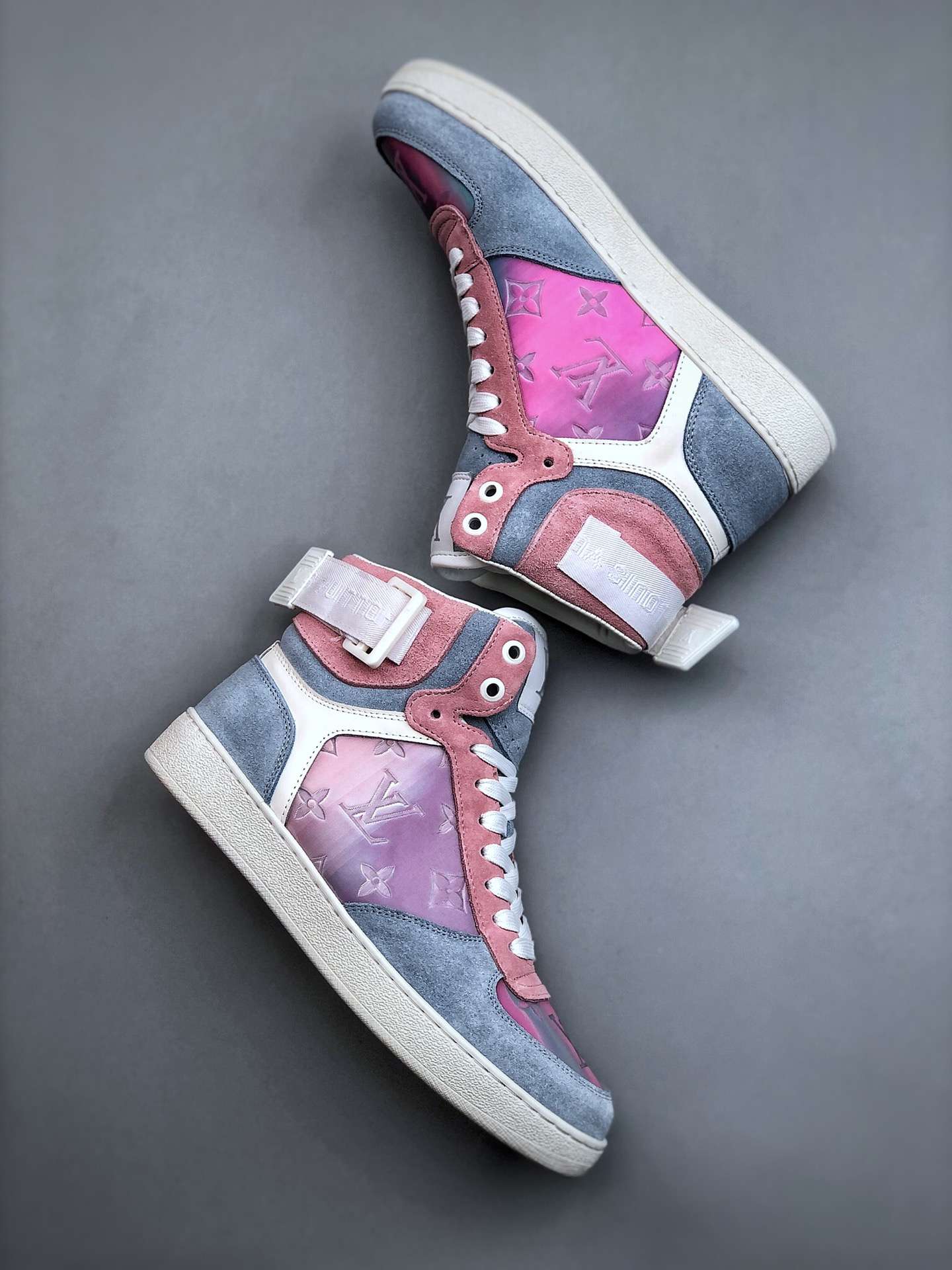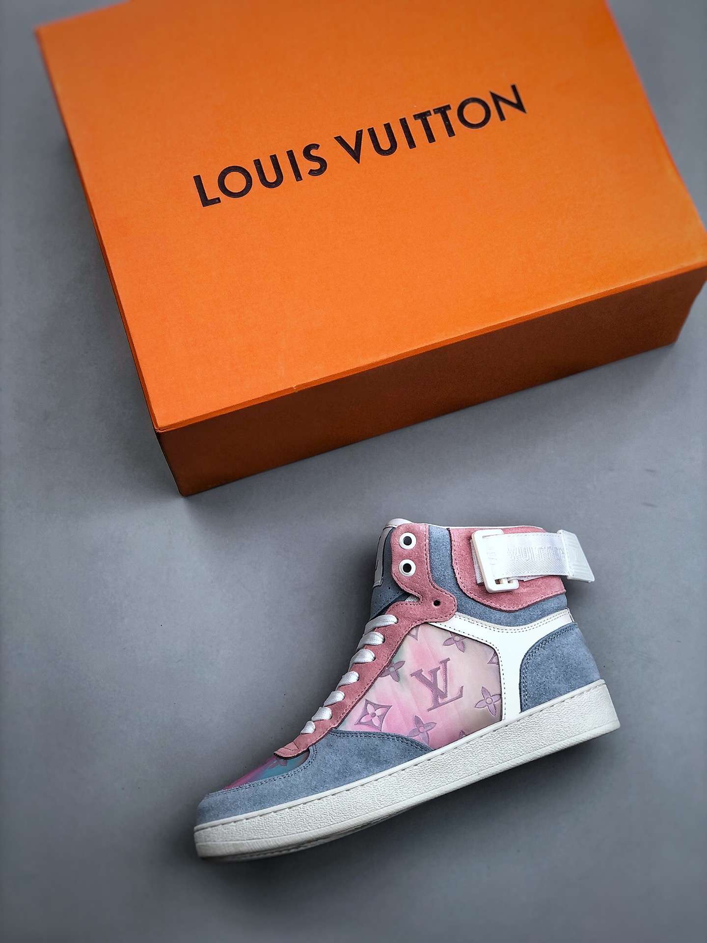 Replica Louis Vuitton Rivoli Monogram Sneakers Grey Pink#LV077