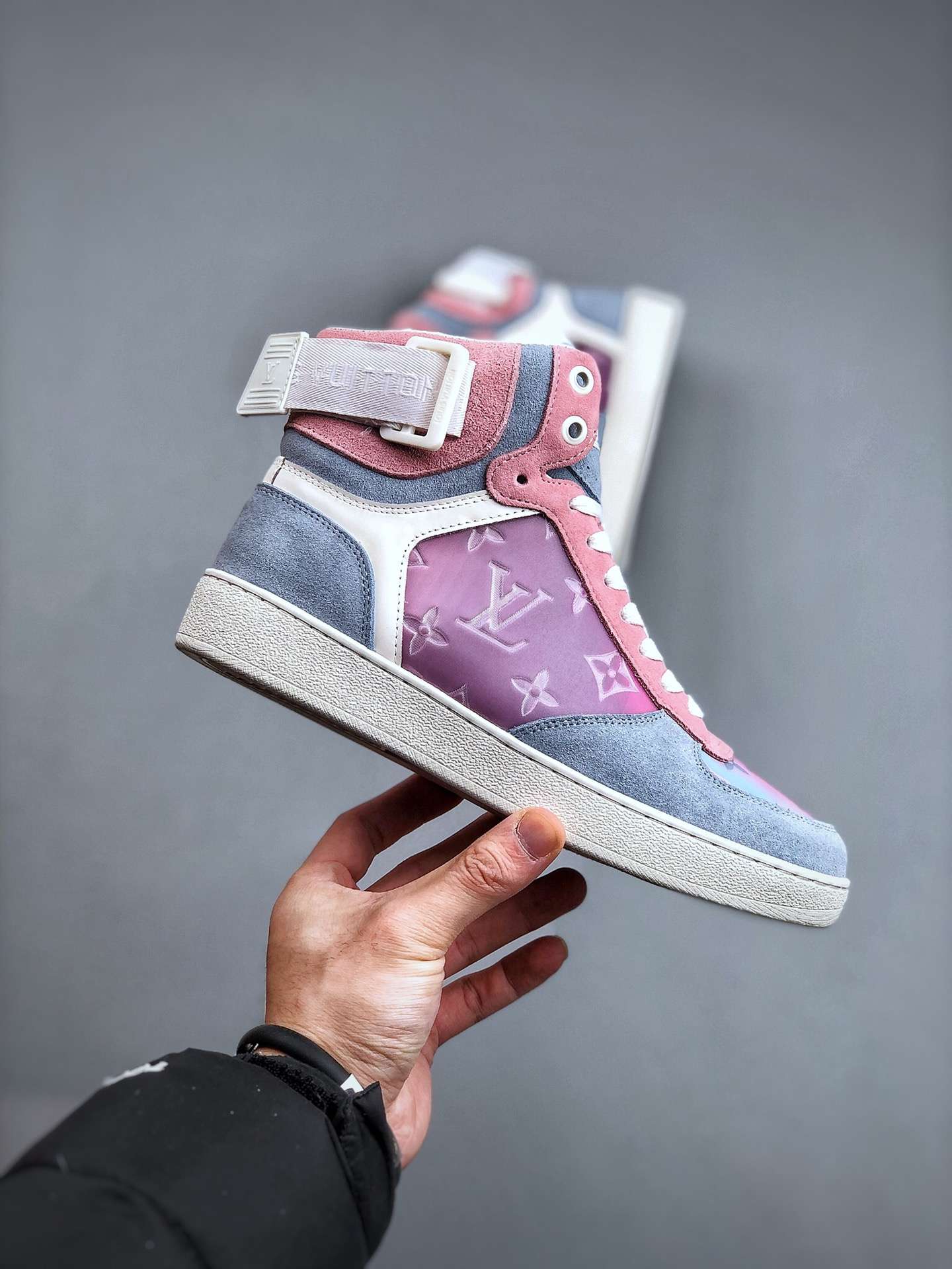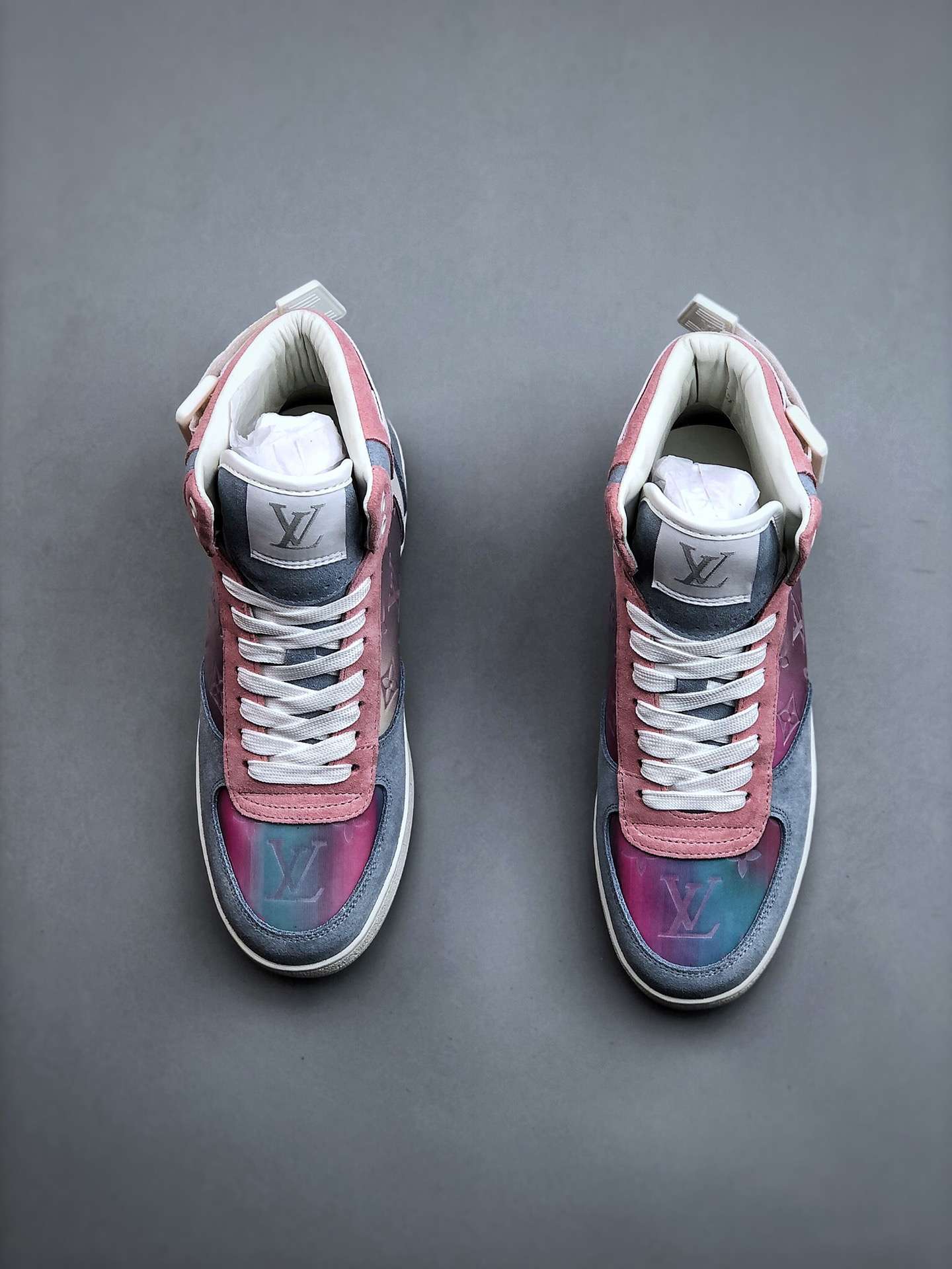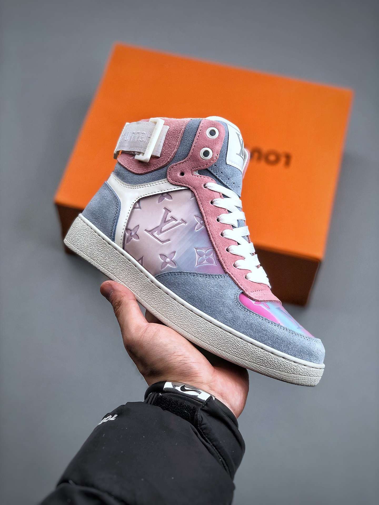Replica Louis Vuitton Rivoli Monogram Sneakers Grey Pink#LV077
