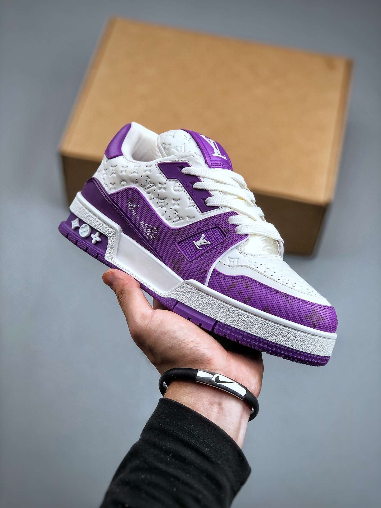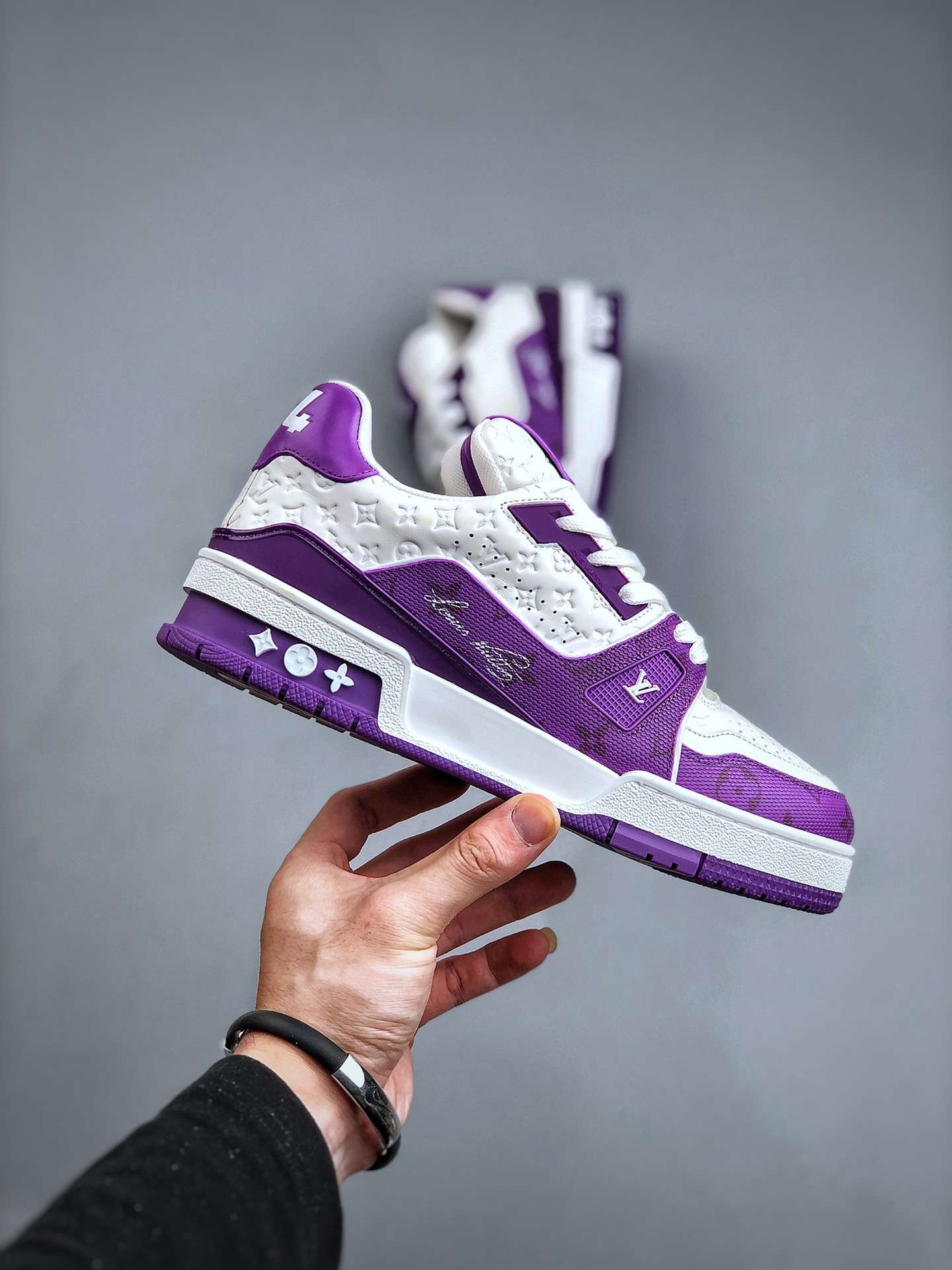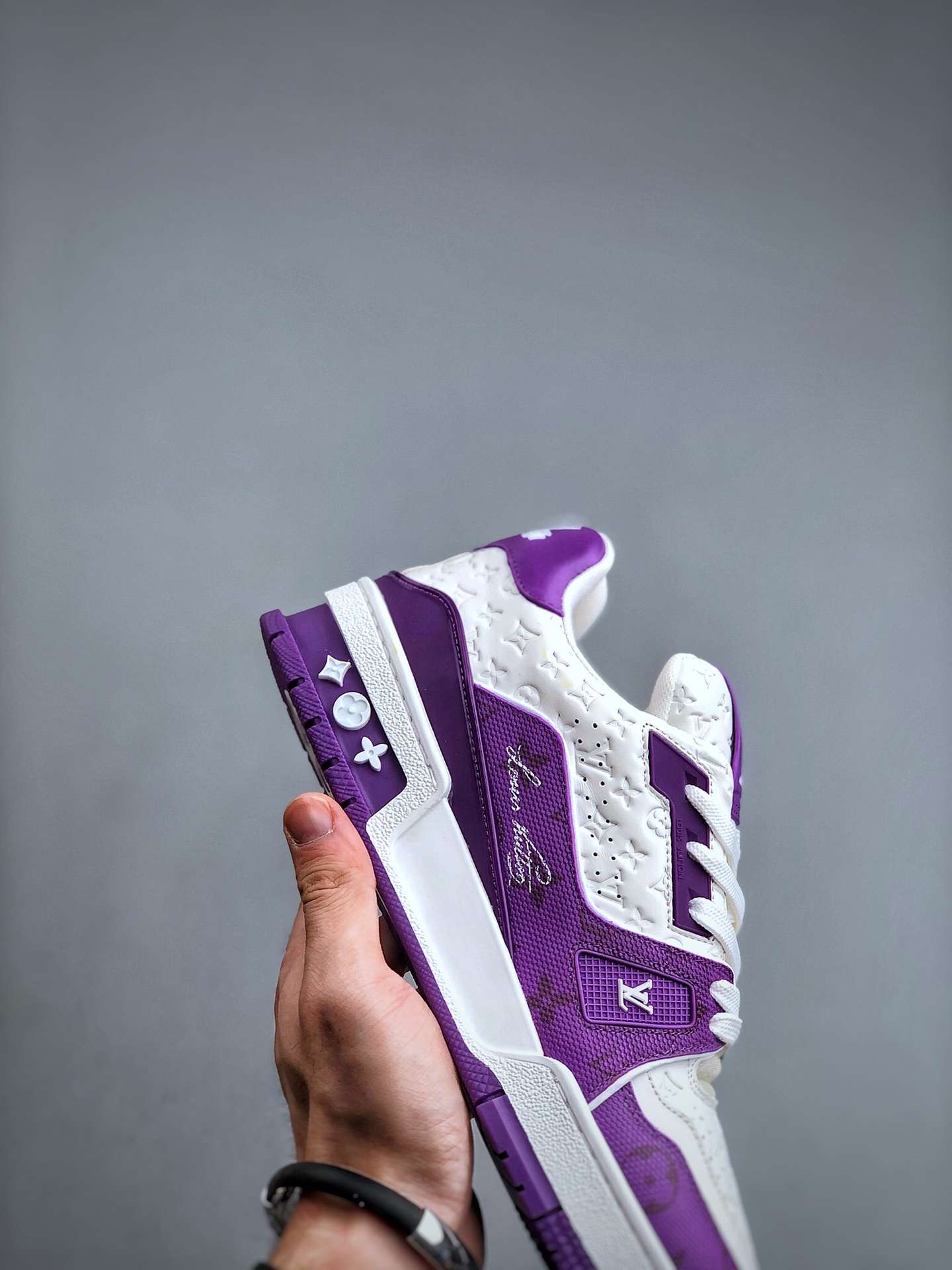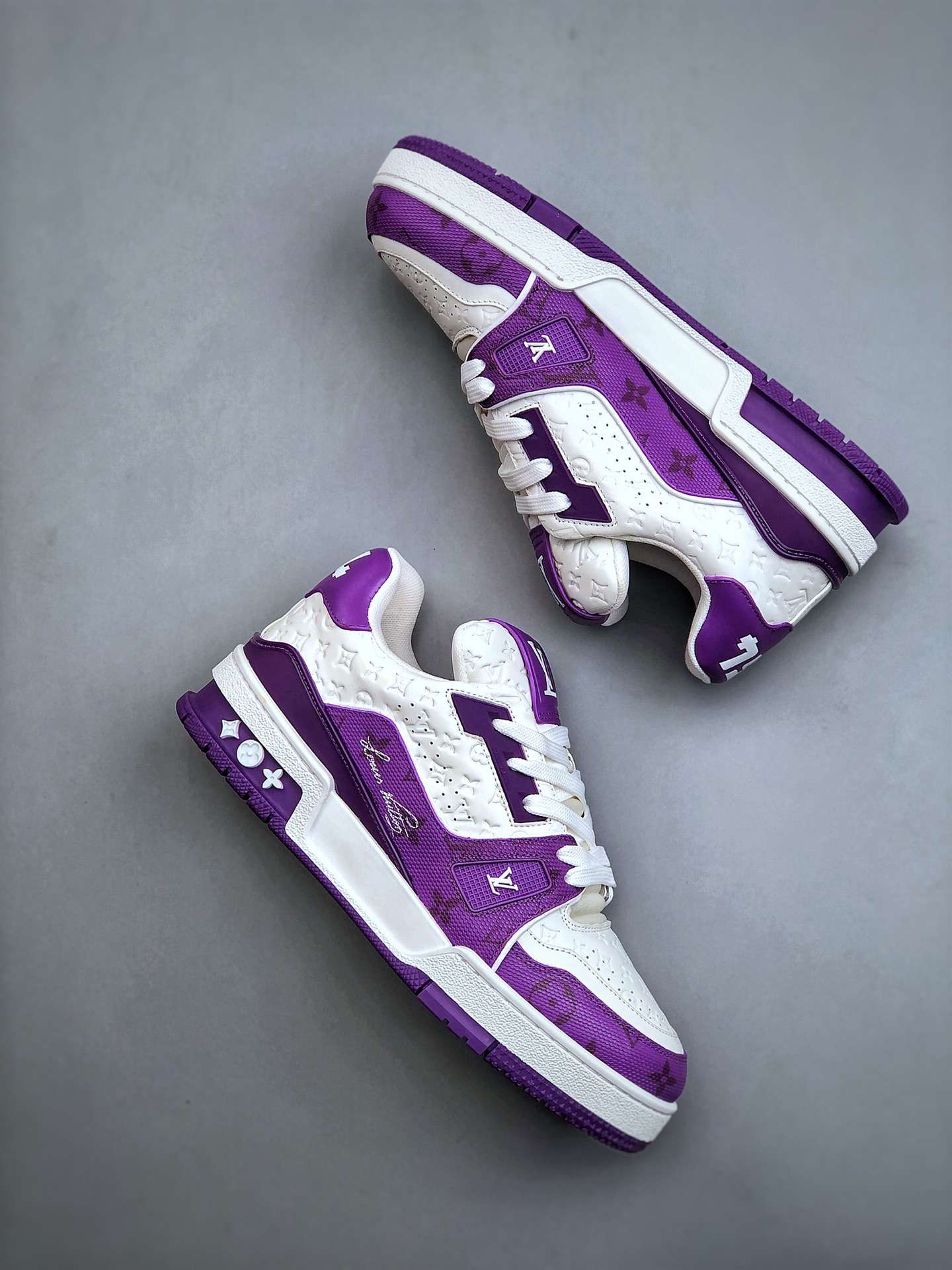 Replica Louis Vuitton Trainer Sneakers White Purple #LV079