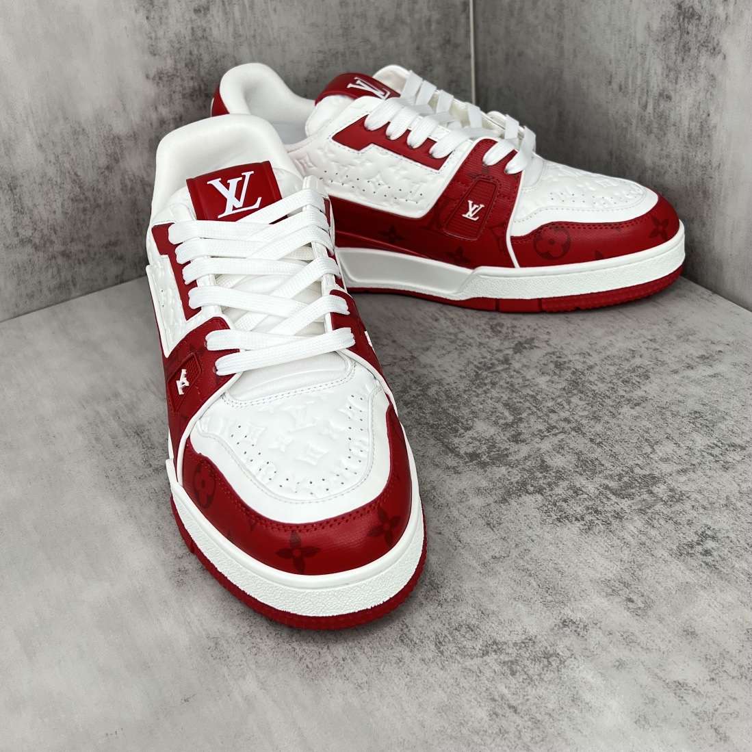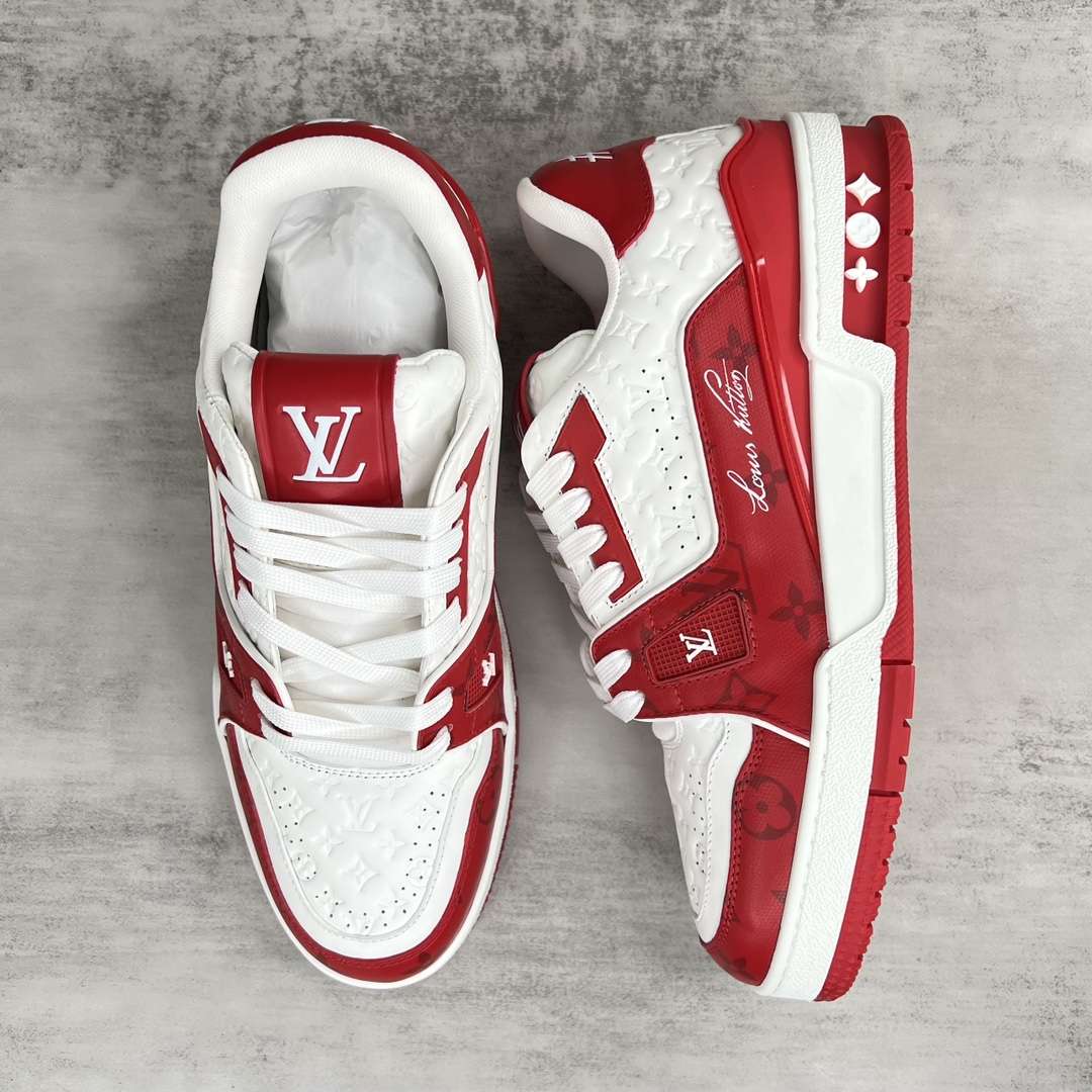 Replica Louis Vuitton Trainer Sneakers White Red#LV085